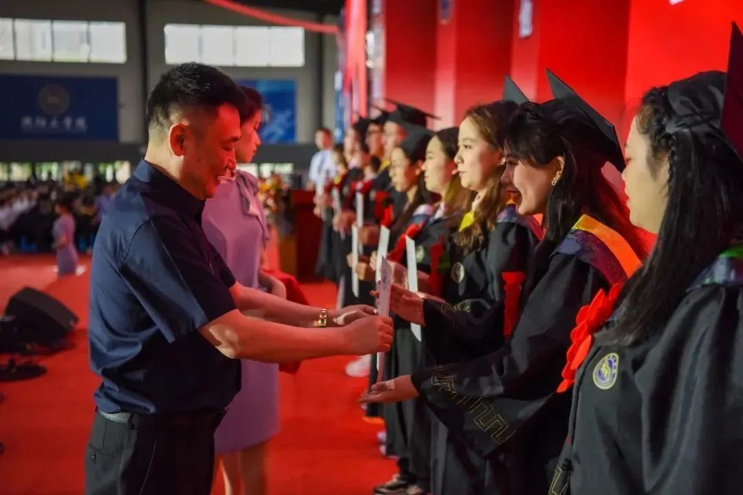 6月21日,我校2023届学生毕业典礼暨学位授予仪式在体育馆举行。董事长王兆宝、特邀嘉宾徐蓉、董事长助理王琪诺,校领导胡晓梅、李康举、公丕国、邵玉、李文国、石伟、刘艾秋、徐颖、杨秀英以及各职能部门、学院负责人,教师代表和全体辅导员出席本次典礼。典礼由党委委员、学生处处长周永昌主持。