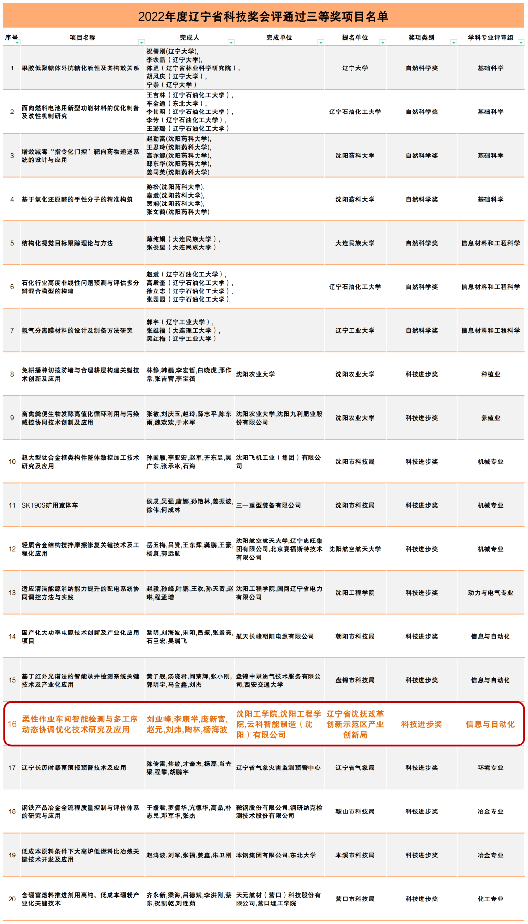 近日,我校作为第一完成单位申报的《柔性作业车间智能检测与多工序动态协调优化技术研究及应用》项目荣获辽宁省科技进步奖三等奖,实现了我校辽宁省科学技术奖零的突破。