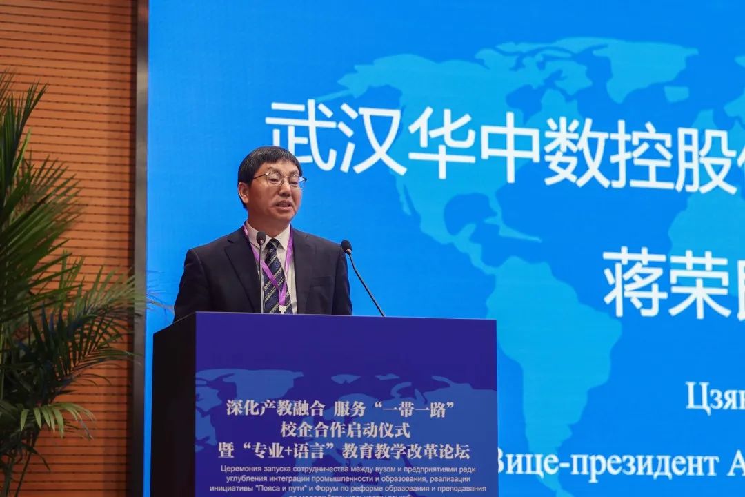 校长李康举在致辞中表示,此次活动是我校推动教育教学改革,提升人才供给质量的重要举措,是响应国家战略、服务“一带一路”建设的具体体现,也是加快促进校企实现深度合作的一次重要尝试。武汉华中数控股份有限公司与我校共建服务“一带一路”订单班,并共建高水平数控技术应用实验室,联合培养行业急需的“专业+俄语”的高素质数控技术国际化应用型人才,更是为我们学校打开了服务“一带一路”倡议的新思路。希望能以此次活动为契机,进一步密切行业企业与我校之间的合作,深化产教融合。