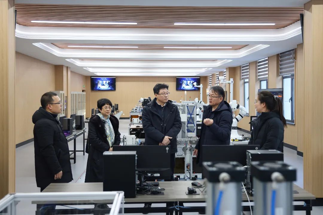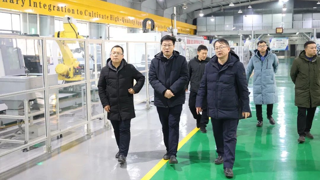 会前,杜忠华一行考察了我校智能制造实训中心、机器人实训中心、浪潮工业互联网学院联合创新中心、智能高速五轴实训基地。
