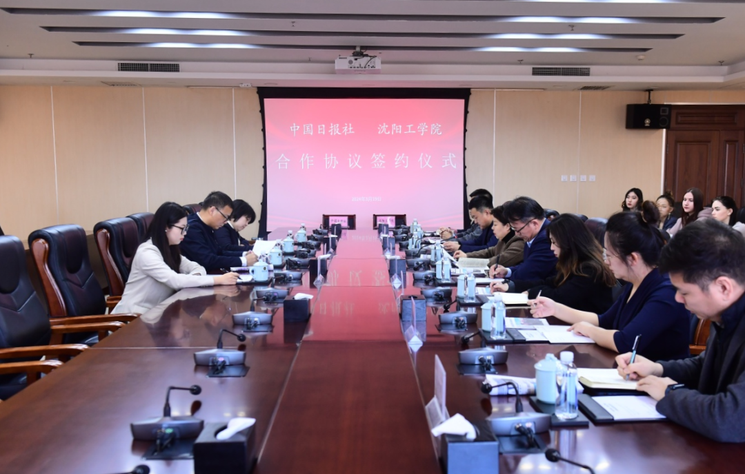 胡晓梅向中国日报社长期以来对我校的大力支持帮助表示衷心感谢。她说,中国日报是中央主要媒体,是世界了解中国、中国走向世界的重要窗口,是国内外高端人士首选的中国英文媒体,也是境外媒体转载率最高的中国信息源之一。中国日报社与辽宁高校共建的第一个“新媒体人才培养实训基地”落户沈工,充分体现了中国日报社对沈工办学水平的高度认可和对人才培养质量充满信心。学校始终坚持国际化办学方针,深度融入共建“一带一路”,与15个国家的40所高校建立了友好合作关系。期待与中国日报辽宁记者站紧密合作,为打造东北亚开放合作枢纽地提供人才支撑和智力支持。