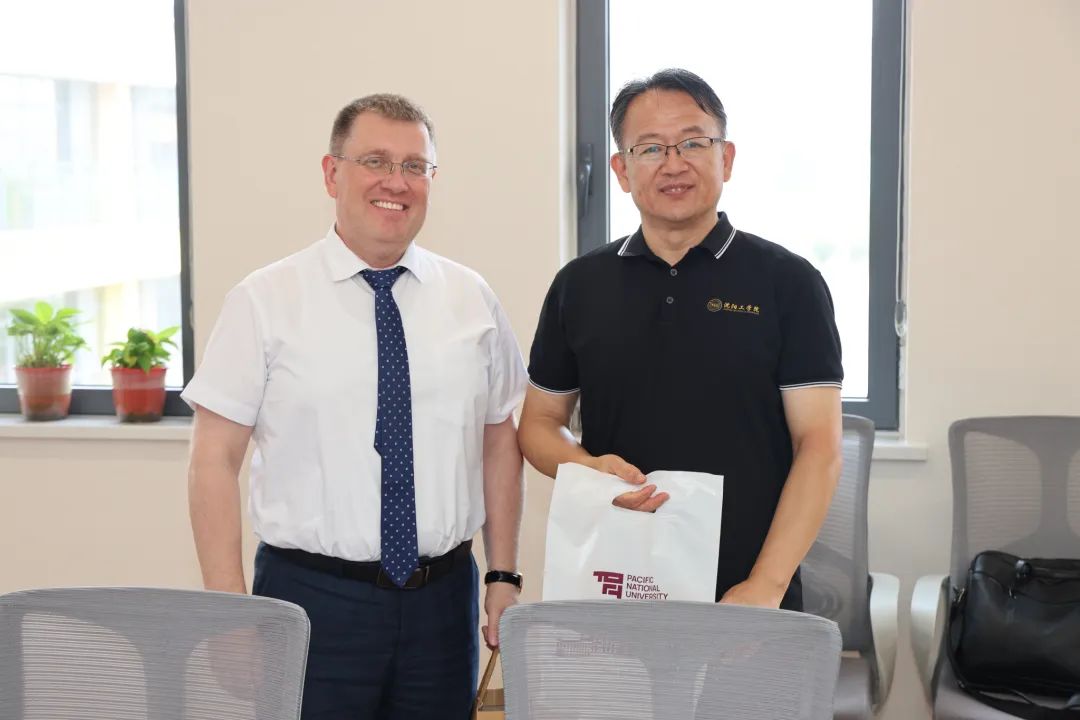 8月7日,校长李康举、副校长徐颖热情接待了来访的俄罗斯太平洋国立大学副校长索罗金·尼古拉·尤里耶维奇、校长助理库列舒娃·塔吉亚娜·亚历山大罗夫娜一行。双方就即将联合举办的中俄校长高端论坛筹备事宜以及人才培养、师生交流、科研合作等多方面合作进行深入交流、探讨。
