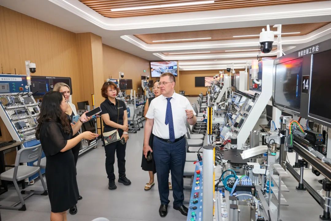访问期间,索罗金·尼古拉·尤里耶维奇一行参观了我校的i5智能制造实践教学中心、国际教育学院、浪潮工业互联网学院联合创新中心、库卡学院及学前教育学院实践教学中心。