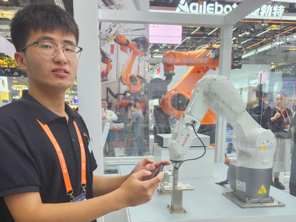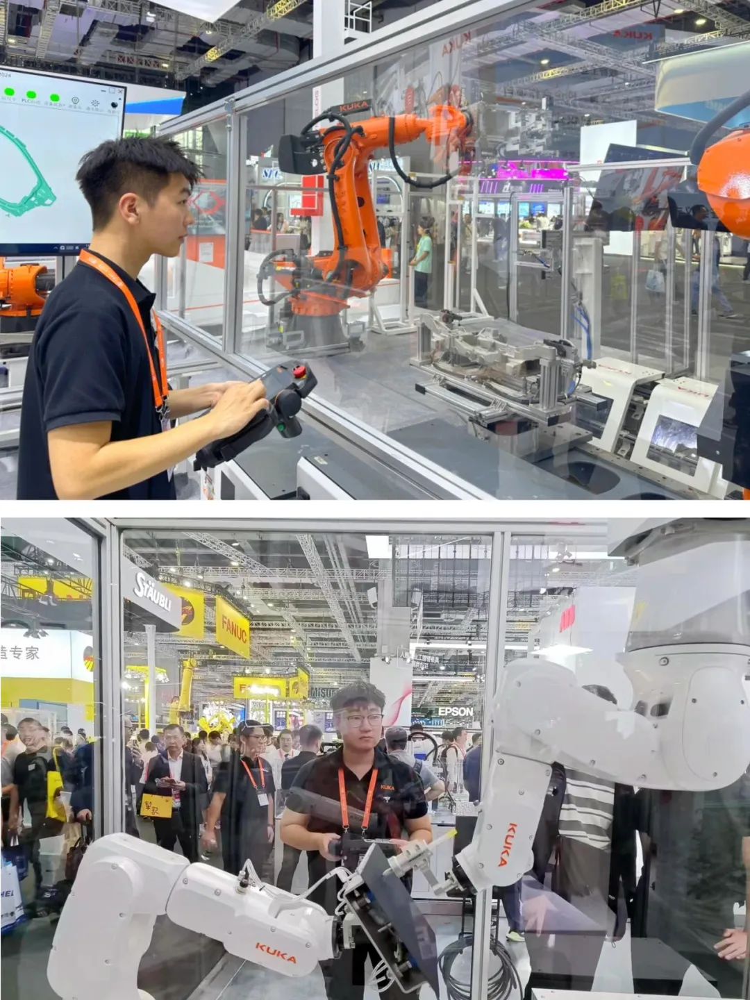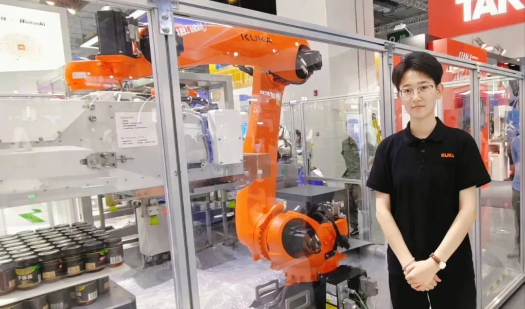 “先生您好,这是我们库卡公司最新推出的KR AGILUS 3代机器人,是按照工作速度设计的紧凑式六臂机器人……我们还有多款机器人,广泛应用于医疗、汽车等多行业”。9月26日,在2024年第二十四届中国国际工业博览会上,在库卡实习的我校学生陈宏鑫,在库卡展台前为参会人员讲解、展示库卡的机器人,吸引了众人的目光。