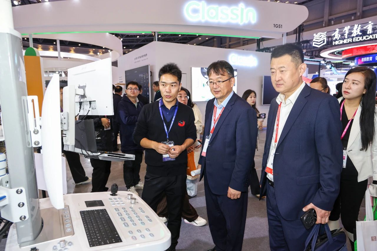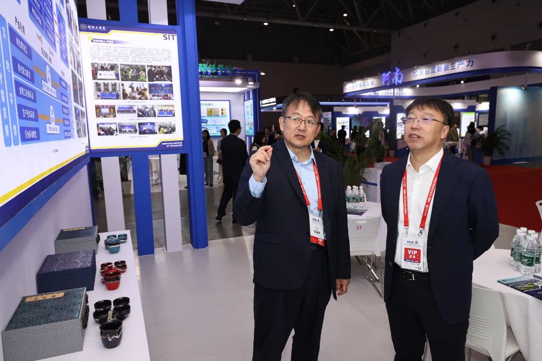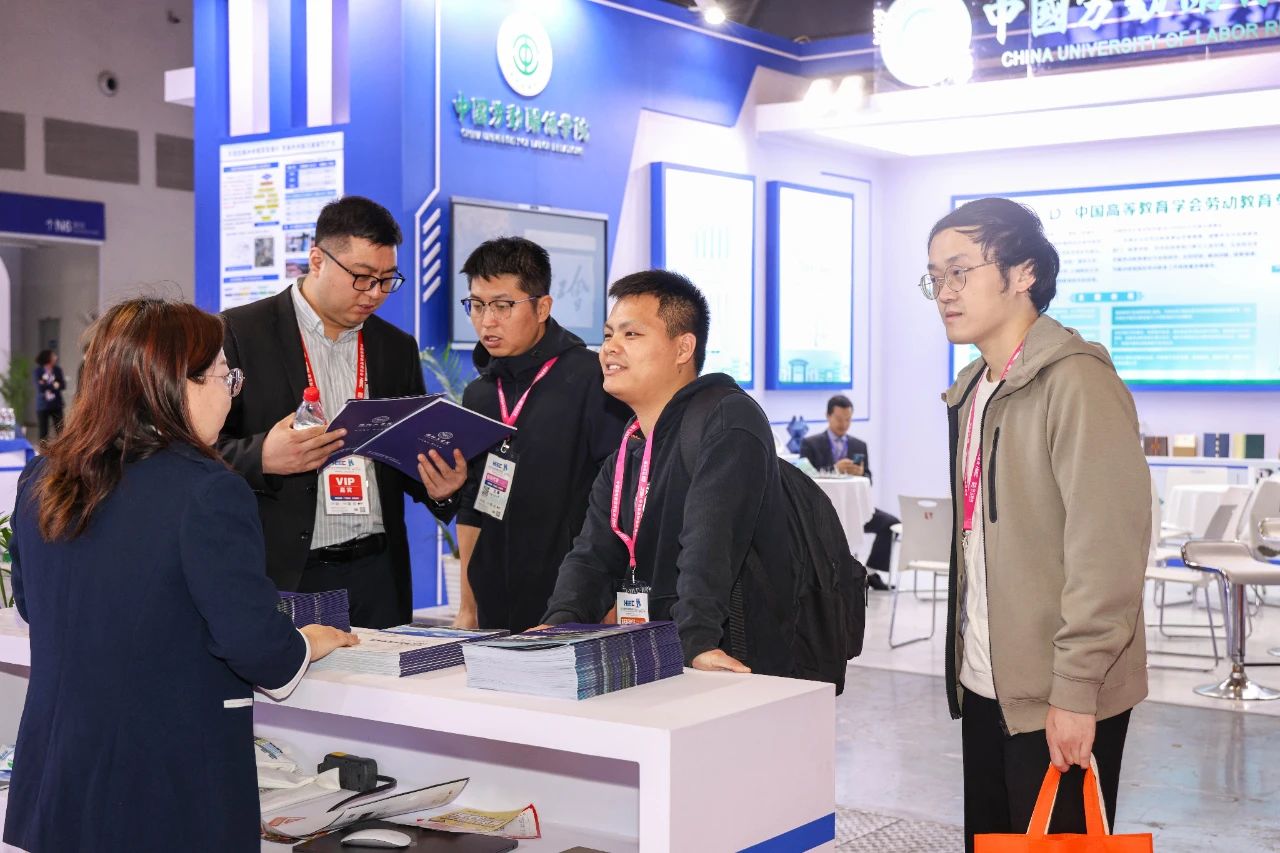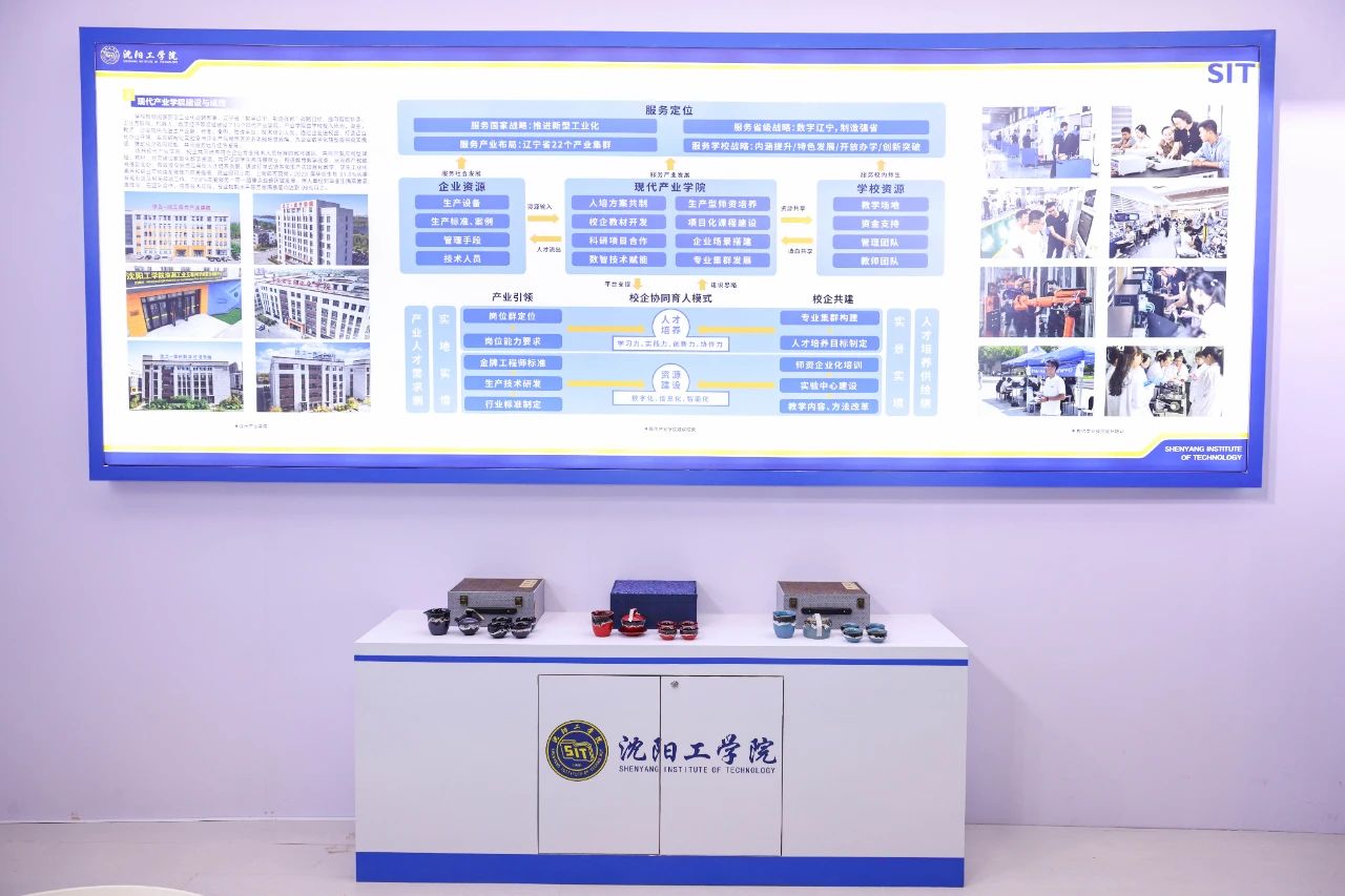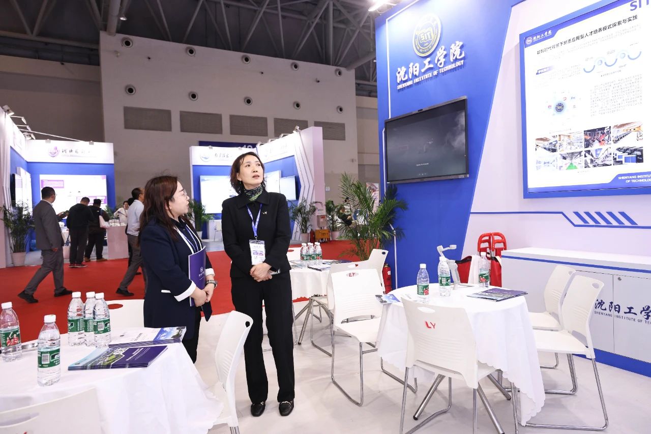 在高校展示专区,我校以“数智时代背景下新质应用型人才培养模式探索与实践”为主题,全面展示学校校企合作模式、现代产业学院建设与成效、语言赋能人才培养等方面的特色和成果,以及校企双向赋能积极促进产教深度融合,赋能新质生产力,共建符合行业标准的数智化现代产业学院,拓宽学生国际化视野,提升人才培养质量等方面的经验做法,并集中展示了学校建设的一批高水平实验室和实践教学中心,受到广泛关注。中国高等教育学会副会长、国家民委原副部长级专职委员管培俊,教育部高教司原司长张大良,中国高等教育学会秘书处副秘书长吴英策、行政顾问张文忠,辽宁省教育厅党组成员、副厅长孔峰到学校展位指导工作。兄弟院校的领导、老师、企业人员及会场观众到展位参观交流,并表示出浓厚兴趣。