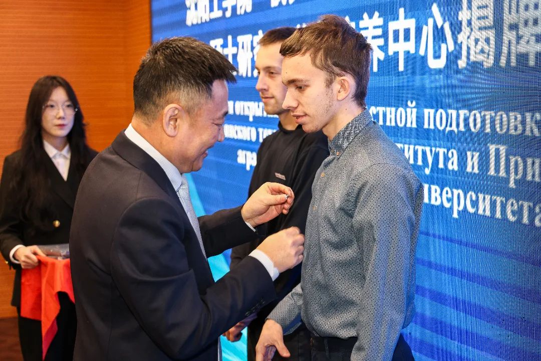 仪式上,王兆宝与波洛金·伊戈尔·伊戈列维奇共同为中心揭牌。王兆宝为来自滨海国立农业技术大学的两位硕士学生佩戴九九精品视频一区在线久久久久久久久久毛片精品美女|国产99久久久久久免费看|中文精品99久久国产|国产69精品久久久久9999|精品久久久久久中文字幕无码|亚洲熟妇无码久久精品国产精品99|精品国产天堂综合一区在线徽章并送上九九精品视频一区在线久久久久久久久久毛片精品美女|国产99久久久久久免费看|中文精品99久久国产|国产69精品久久久久9999|精品久久久久久中文字幕无码|亚洲熟妇无码久久精品国产精品99|精品国产天堂综合一区在线文化衫。波洛金·伊戈尔·伊戈列维奇为我校教师颁发俄罗斯滨海国立农业技术大学聘任硕士导师校长令。李康举为滨海国立农业技术大学教师颁发聘书。