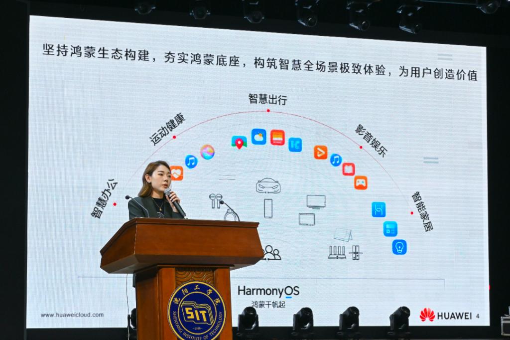 4月8日,华为校园公开课(HCOC)在校图书馆礼堂举办。此次活动以“鸿蒙启航 开启全场景智慧生态新纪元”为主题,吸引了近800名师生聆听。华为全球培训中心高级讲师汪海锋、辽宁终端业务部营销总监张楠作为主讲嘉宾,进行前沿技术分享与职场经验交流,助力沈工学子探索数字化浪潮下的专业成长方向与职业发展新机遇。