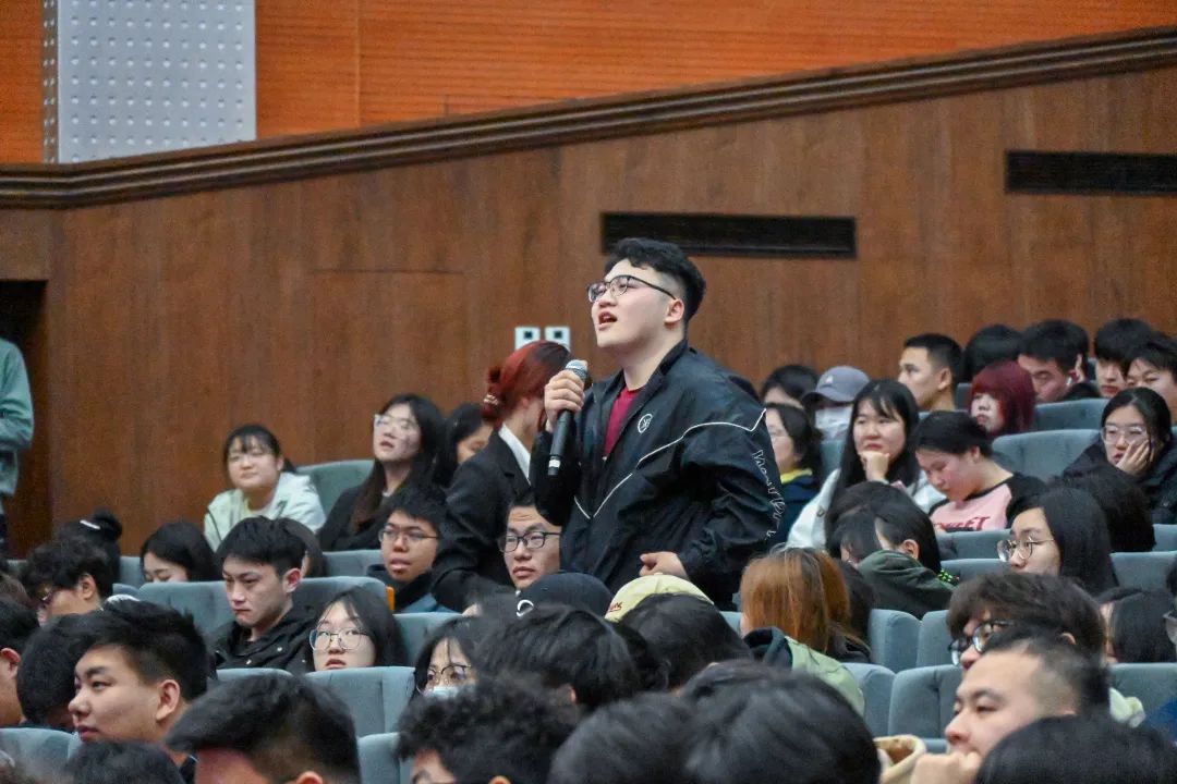 互动环节中,学生们踊跃提问,问题涵盖专业知识、鸿蒙开发者工具应用场景、跨设备协同技术难点以及未来职业规划等多个方面。汪海锋耐心细致地逐一解答,并建议同学们积累开源代码和大赛经验,如学习HarmonyOS开发框架、参与开发者社区实战项目,以提升自身的就业竞争力。现场众多学生加入花粉俱乐部,踊跃咨询项目参与方式,对鸿蒙生态展现出极高的热情和浓厚的兴趣。