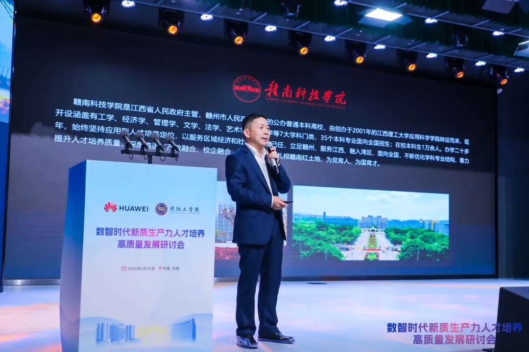 烟台职业学院副校长丁春燕在主题演讲中,重点介绍了烟台职业学院构建的区产教联合体和行业产教融合共同体,积极推动校企合作,目前已与企业合作建立14个产业学院。面向未来,学校将以华为&烟台产教融合实践中心为数字底座,通过“数智+新型工业化人才”培养,打造高水平专业群和社会化培训认证服务平台。同时,学校还将推进十大工程建设,培育“工”字形应用型人才,助力本地产业数字化发展。