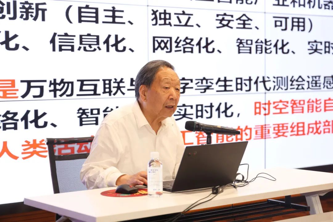 报告会上,李德仁院士以《论无所不在的时空智能》为题,围绕新质生产力与时空智能、空天时空智能:无所不在的PNT与PNTRC、空地时空智能:无人机与移动测量机器人、水面水下时空智能:传感网与无人舰艇、深空时空智能:月球与火星探测、社会经济学时空智能、医学时空智能等方面展开分享。他指出,世界是物质的,物质是运动的,运动着的物质世界是用时空信息来描述的。在当今万物互联和人工智能时代,时空数据获取、处理、信息提取与知识挖掘需要走向智能,时空智能学应运而生。
