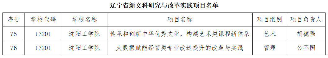 近日,辽宁省教育厅发布了《辽宁省教育厅办公室关于推荐文科研究与改革实践项目的通知》,我校获批两项辽宁省新文科研究与改革实践项目。具体名单如下: