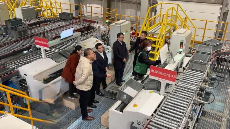 会后,李康举一行在京东物流东北分公司教育产业平台负责人马春的陪同下,参观了京东全自动化分拣矩阵和天狼仓。