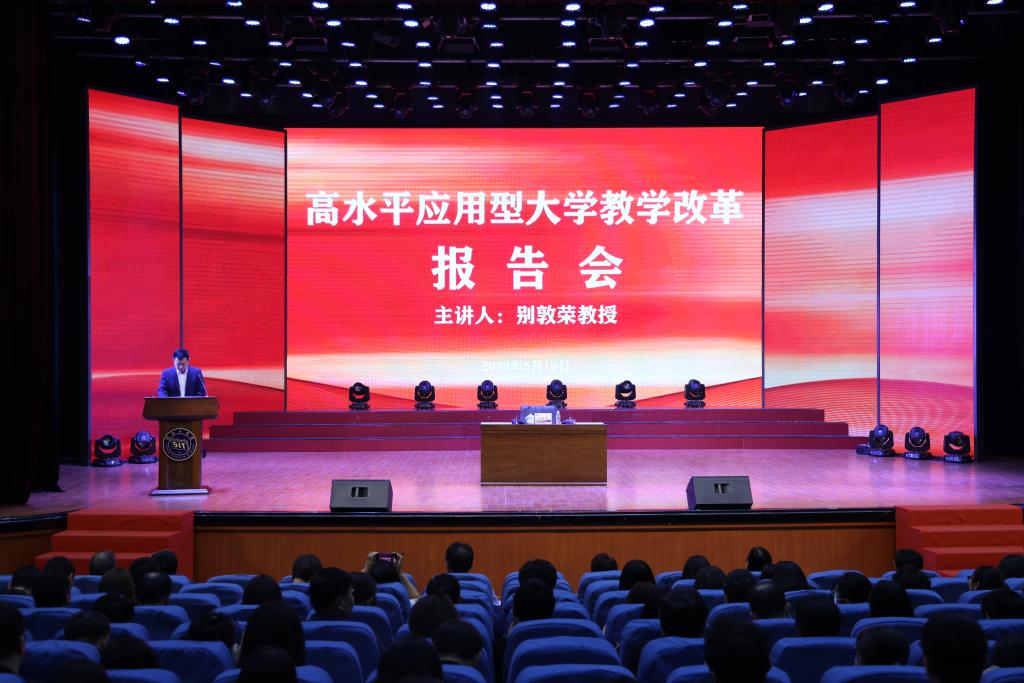 5月19日,厦门大学教育研究院院长、博士生导师别敦荣教授莅临我校作“高水平应用型大学教学改革”专题报告。校领导、中层干部、各单位教学管理人员及部分教师参加报告会,会议由常务副校长公丕国主持。