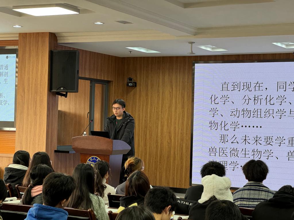 课上,生命与工程学院2022级动物医学专业学生黄奕阳、傅佳乐、尤浩洋分享了在沈阳农业大学跨校修读的收获与感悟。