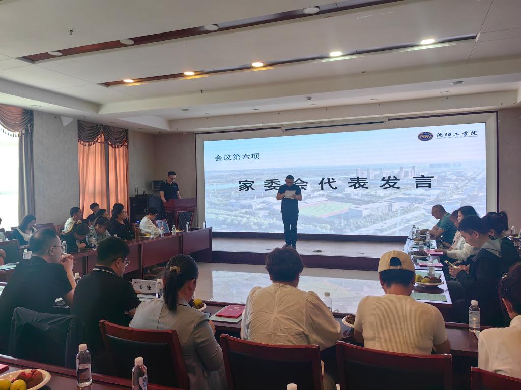 会上,成立铁岭地区家长委员会。学校为家委会成员颁发聘书。家委会代表、刘家瑜家长表示,感谢学校搭建交流平台,家校合作对孩子成长至关重要。希望学生在学校勤奋学习,日后能为国家建设贡献力量,自己也会积极配合学校工作,共同助力孩子成长成才。我校考研学生代表黄晓欧结合自身经历,分享了自己在校期间成长经历以及成功考取研究生的成长过程。学生家长代表向学校赠予锦旗,既是对学校育人工作的高度认可,也寄托着家长对学校发展的殷切期望。
