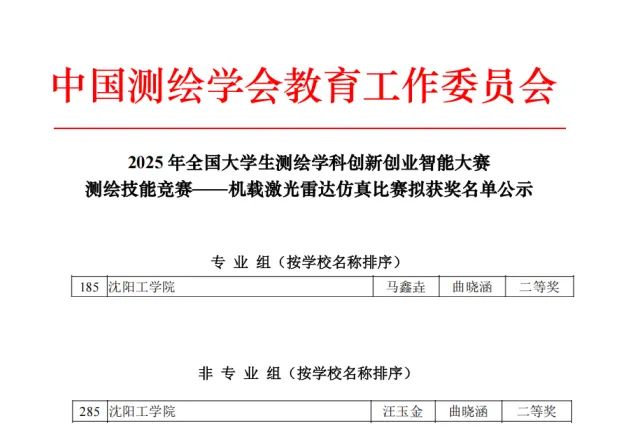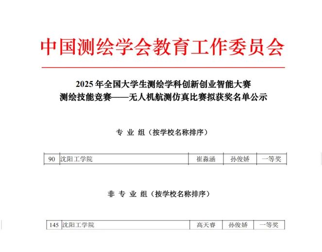 此次佳绩的取得,与我校深度依托沈工-南方测绘北斗时空信息产业学院产教融合优势密不可分。该产业学院以“产学研用”协同创新为主线,实施“岗课赛证”融通的人才培养模式,将行业的前沿技术资源、企业实践案例与学校的教学体系深度融合。这种沉浸式的实践培养,不仅让学生在大赛中展现出扎实的技能功底和创新思维,更持续推动着学校人才培养质量与行业发展需求的精准对接,为测绘领域输送更多兼具理论素养与实践能力的复合型人才。