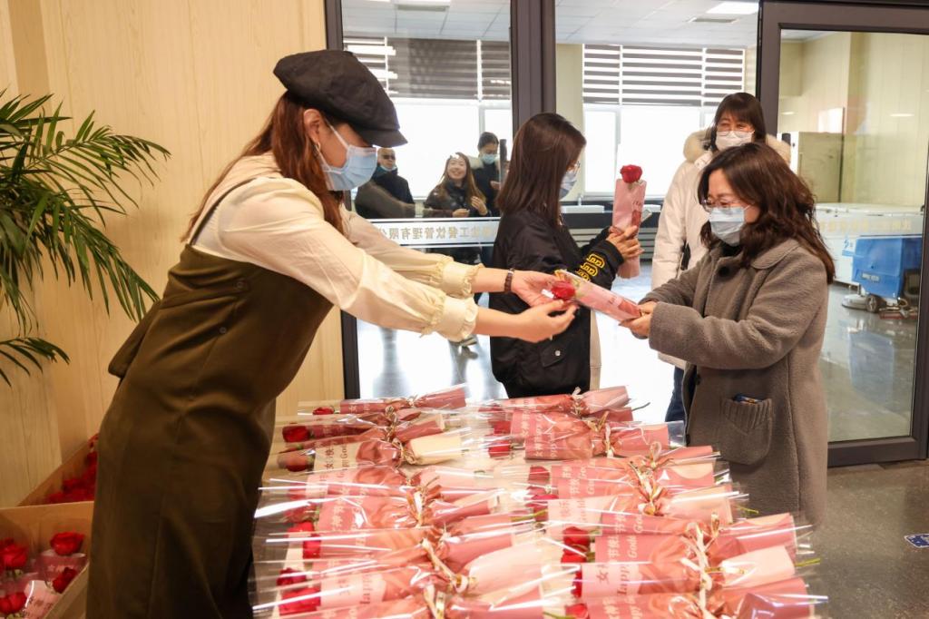 学校工会为女教职工送上鲜花