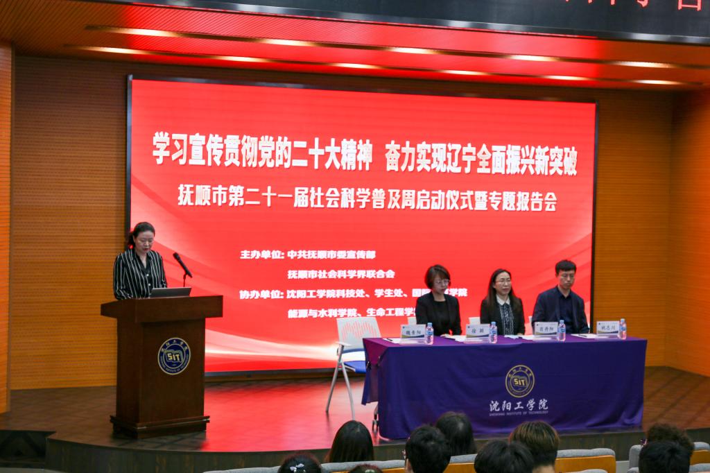 徐颖在致辞中表示,我校能够作为此次社会科学普及周活动协办单位,是抚顺市委宣传部、抚顺市社科联给予学校各项工作的充分肯定。我校将以此为契机,坚持以习近平新时代中国特色社会主义思想为指导,全面学习贯彻党的二十大精神,开展丰富多彩的社科普及活动,不断扩大社科普及活动的覆盖面和影响力,全面贯彻新的发展理念,服务建设新的发展格局,以加快建设最好的应用型大学、办人民满意的教育为目标,为服务地方经济社会发展贡献沈工力量。