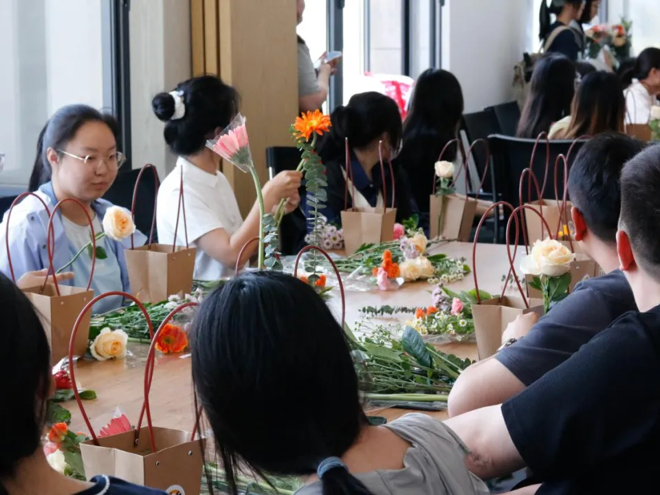 此次插花活动,不仅丰富了同学们的精神文化生活,提高了大家对美的鉴赏能力,也增强了同学们之间的互动交流。每一个参与的同学都可以带着自己独一无二的插花作品回去,让心灵放松的同时,也能带来视觉上的享受。