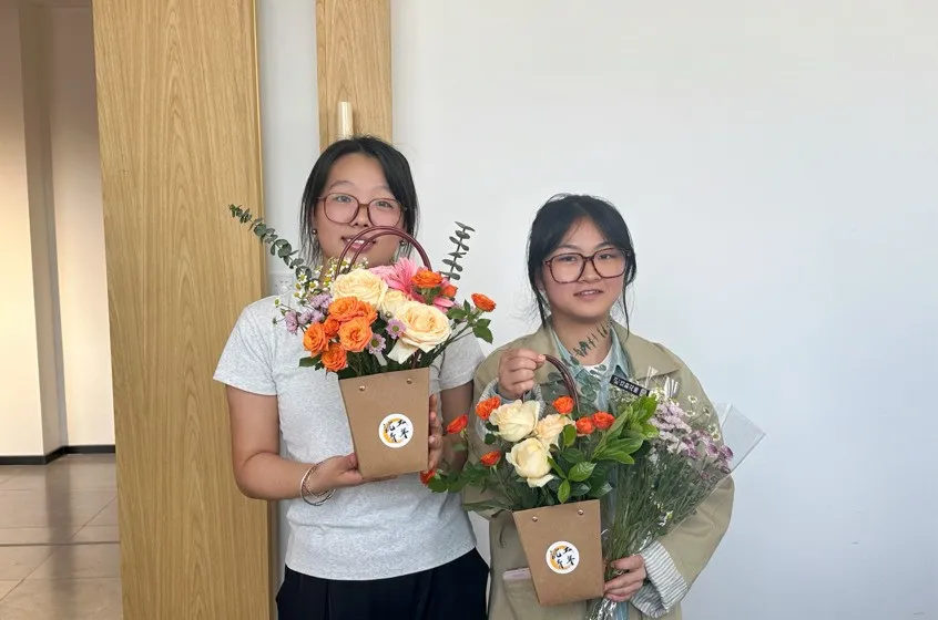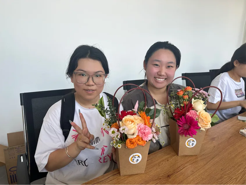 活动伊始,郑老师介绍了各种花材的名称和特点。并详细介绍了插花艺术中需要的知识与技巧,例如色彩搭配原则、空间布局特点以及花束包装和情绪表达等。大家充分发挥自己的想象力和创造力,用自己的巧手修剪、搭配花枝。活动现场,花香四溢、欢声笑语。在愉快的氛围中,大家制作出了一个个精美的插花作品,体验了创作的乐趣。